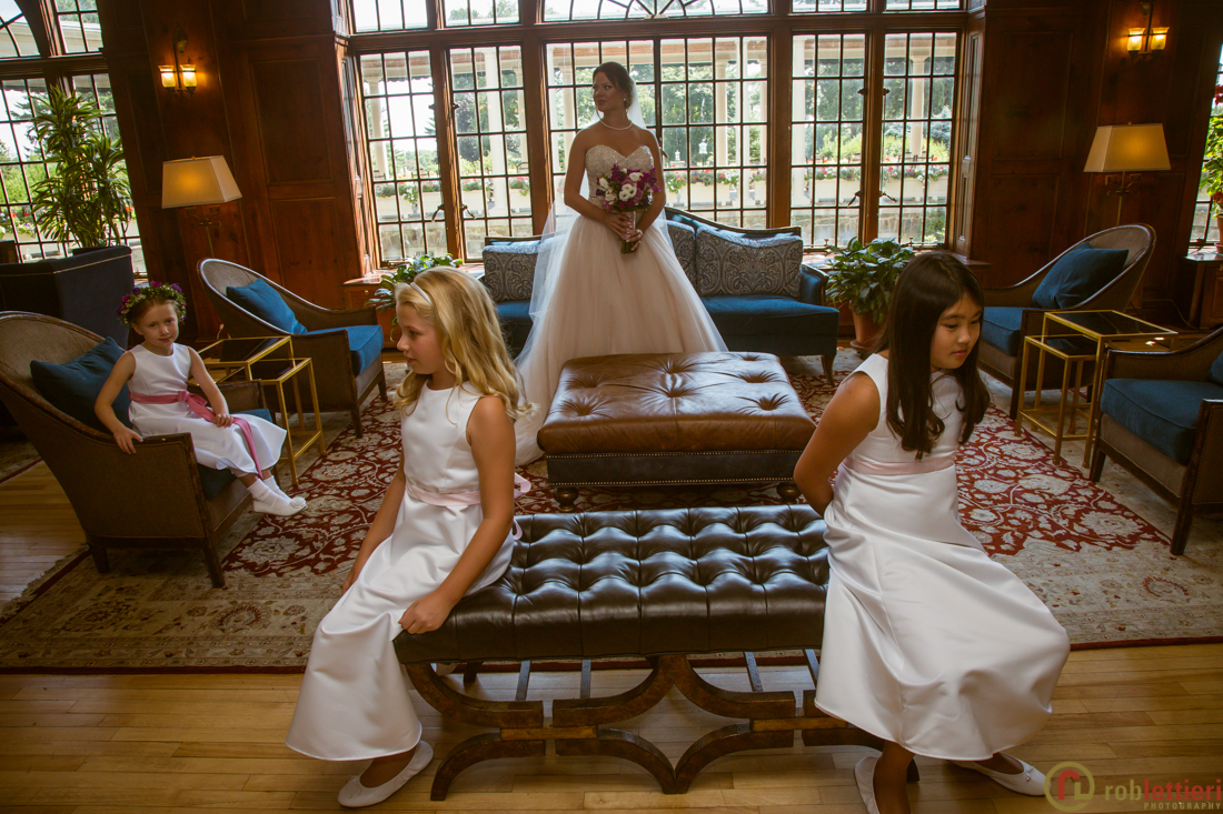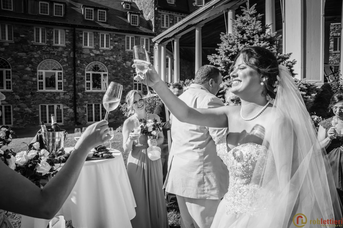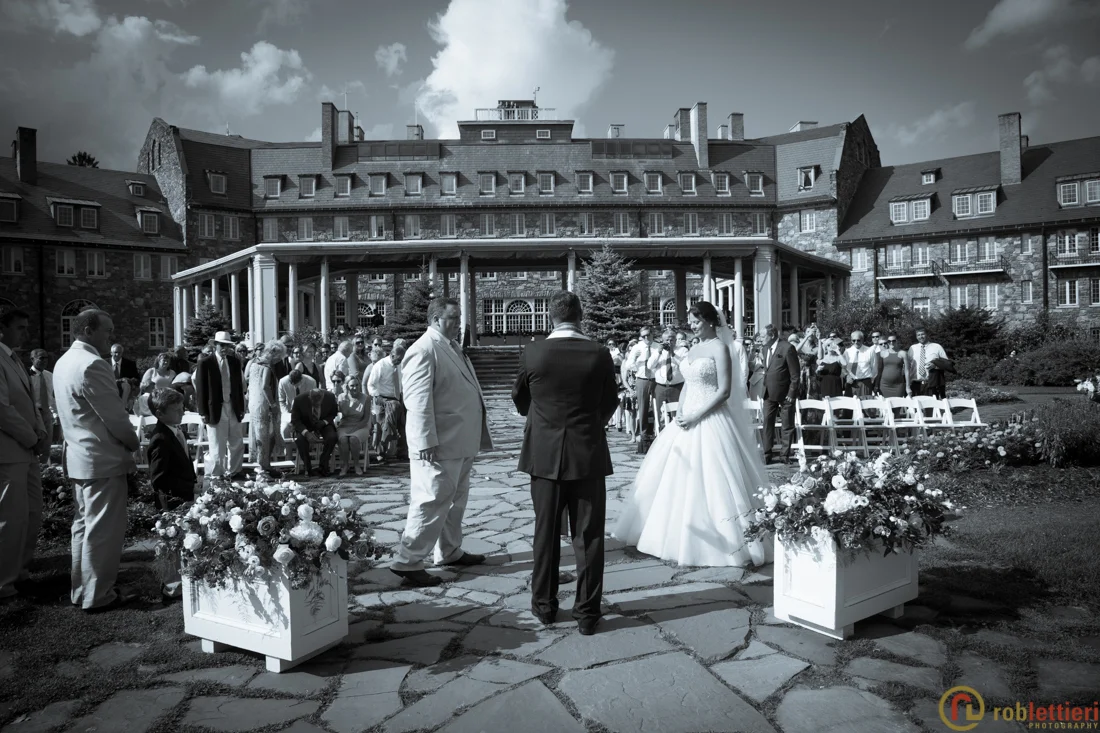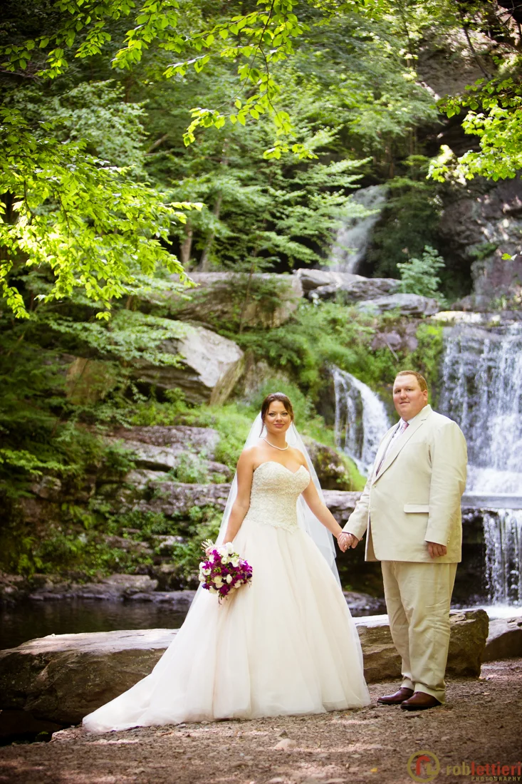 Alena and Thomas were married on a hot August day, on the patio below the veranda at Skytop Lodge in Skytop, Pennsylvania. This venue boasts sweeping vistas, a stunning lobby, and an elegant reception area. Thomas and his family have spent generations at Skytop. Alena is from Belarus so this made for a festive reception in the Evergreen Ballroom. We drove out to the waterfalls for some pre-ceremony photography. Family portraits were staged in the lobby outside of the new Library bar.