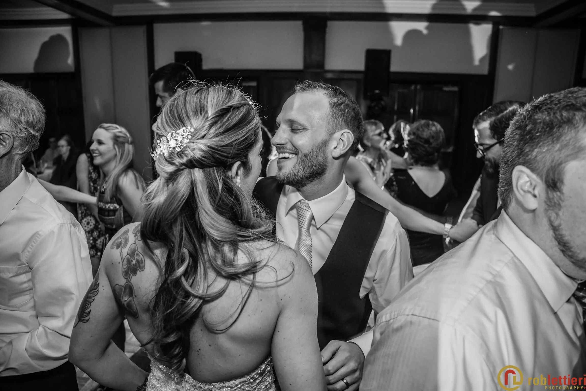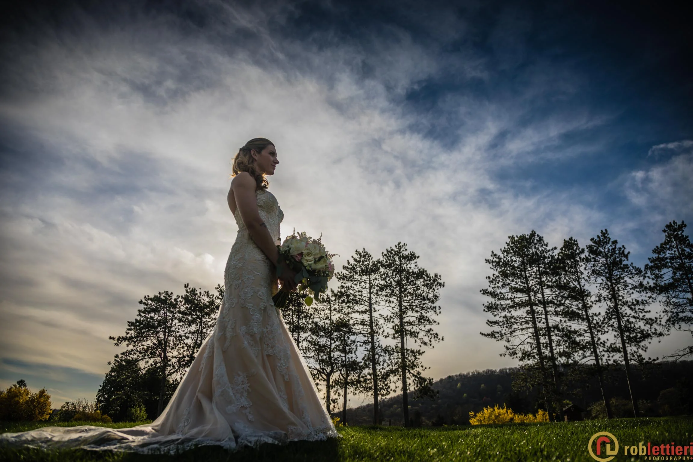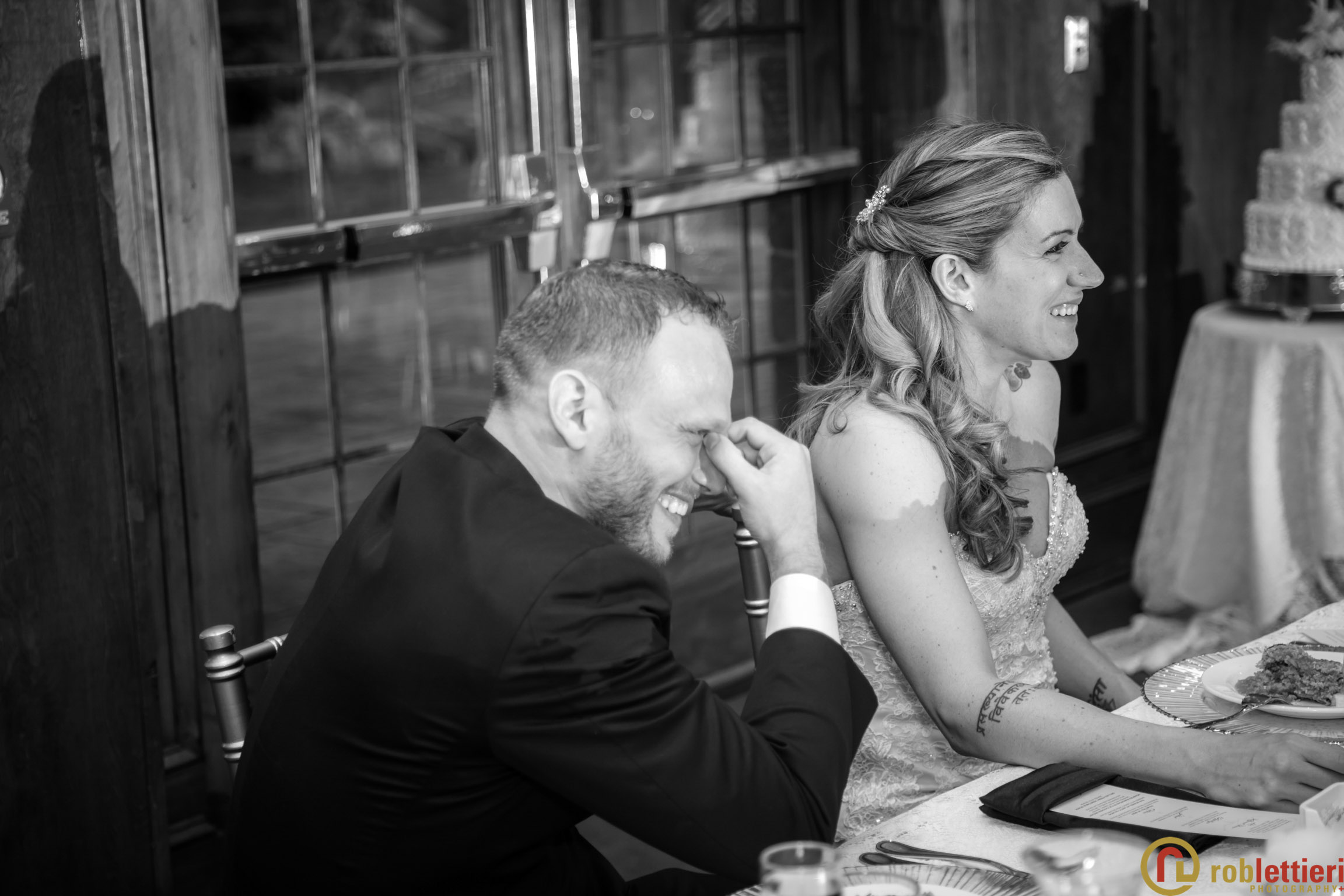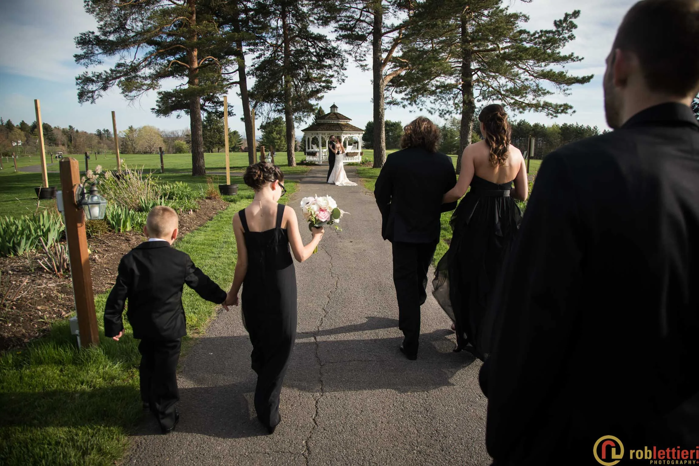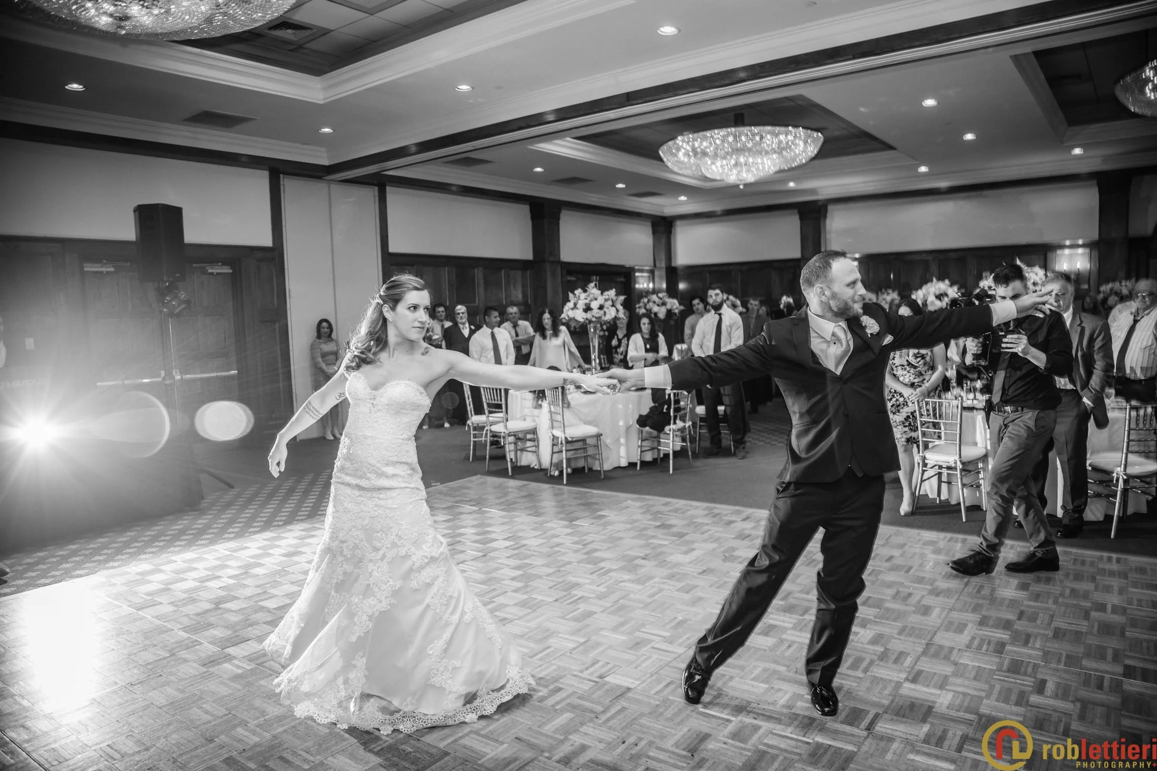The patio marriage ceremony was set in the Formal Garden against the porch backdrop among a plethora of tulips on all sides. Cocktails followed on the Evergreen patio outside the ballroom. DJ Marquis from Philadelphia orchestrated the festivities, before during and after a great dinner with toasts and various dances.